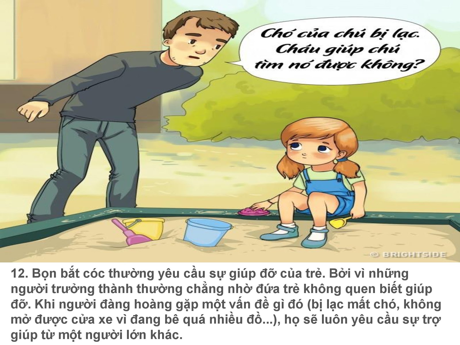 12. Bọn bắt cóc thường yêu cầu trẻ đi theo để giúp những việc nhỏ nhăt